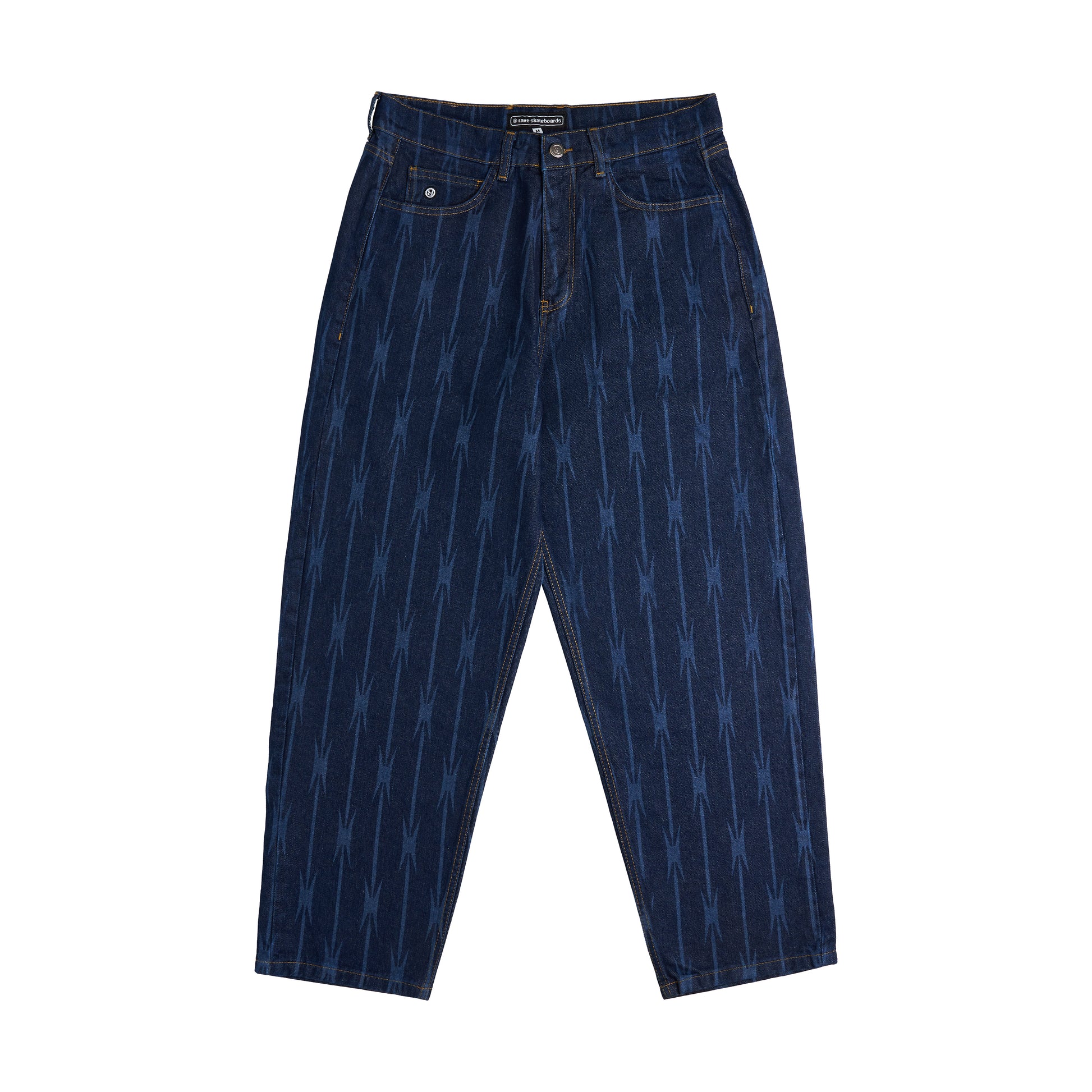 16 Oz denim Contrast StitchingEmbroidery on the 5th pocketCustom Stud ButtonScreen Printed Leather Jacron PatchLaser engraved pattern